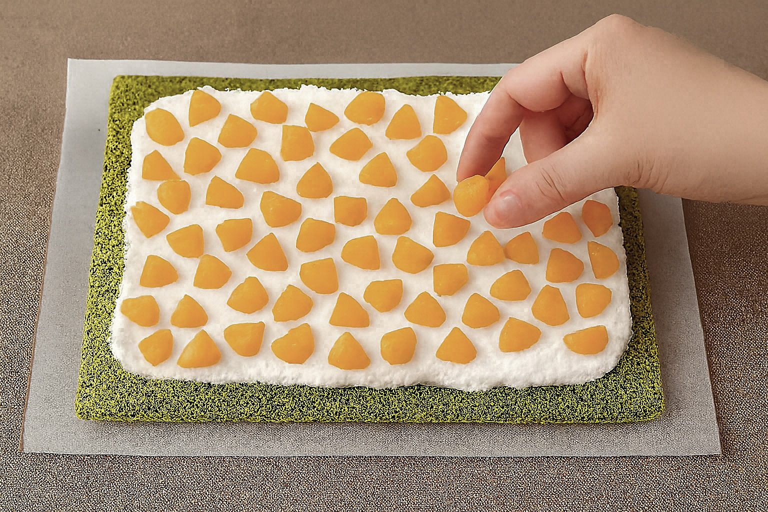 - When rolling, place more cream at the front and less at the back, creating a firm core. Cutting the edge diagonally gives a neat finish. Wrap in plastic wrap and let rest in the refrigerator for stability.