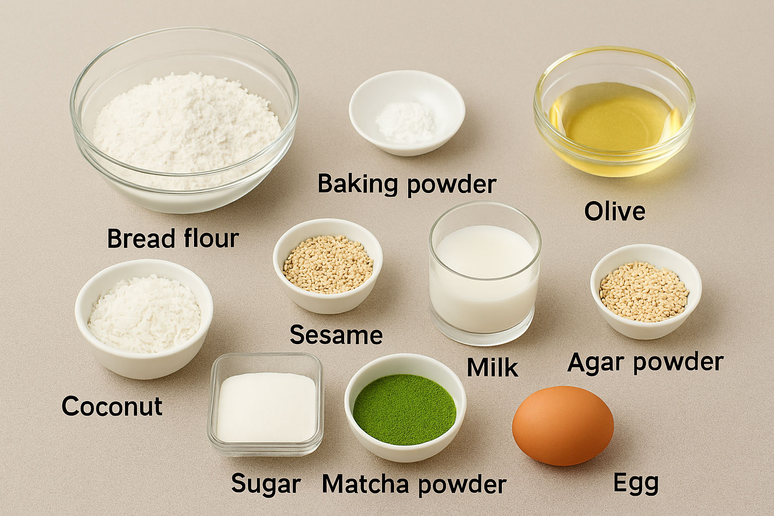 1:Ingredients for One Loaf of Matcha Bread